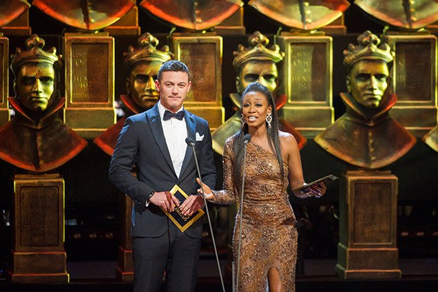 Luke Evans and Beverley Knight presenting at the Olivier Awards in 2017